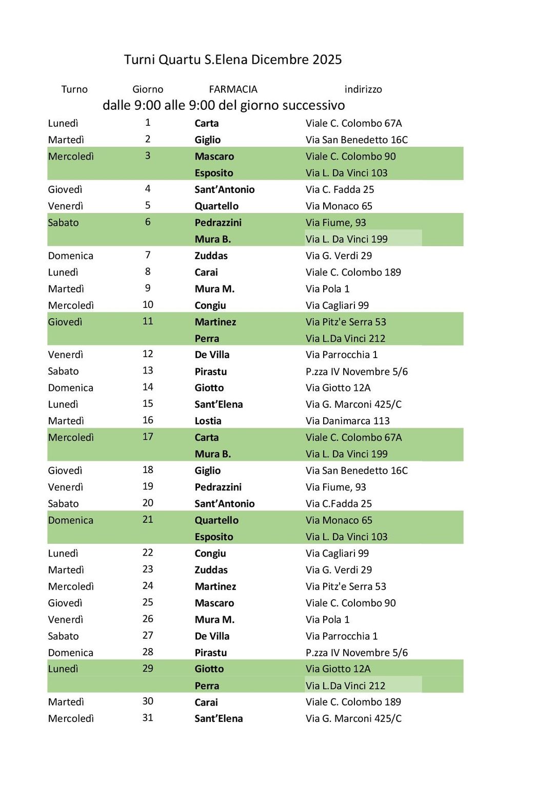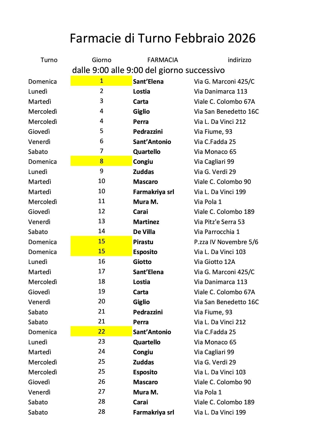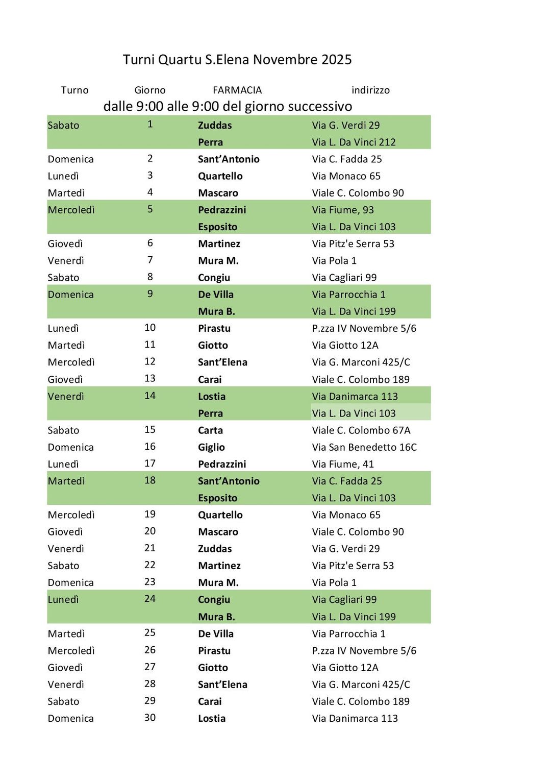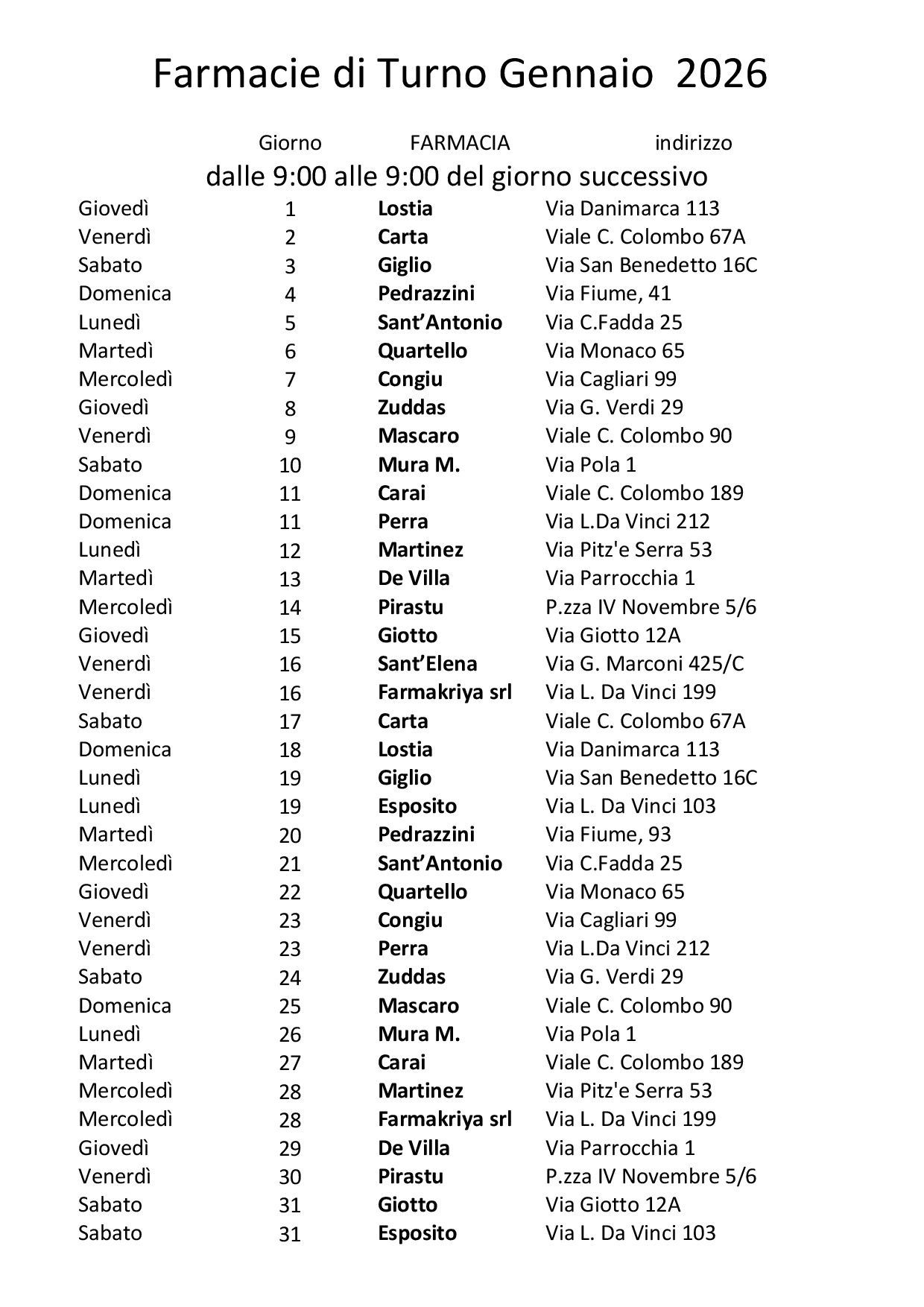 Oltre ai regolari turni diurni, l’attività vi garantisce il servizio di turno secondo le modalità disposte dal Comune.